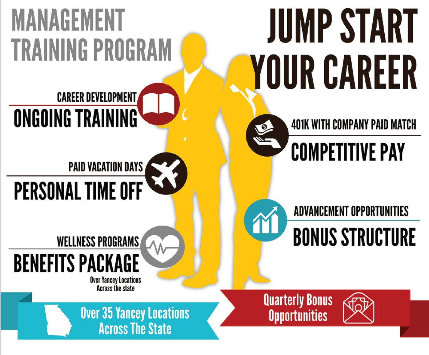Joining the Management Training program will be a life-changing, world impacting experience. Yancey directly supports and participates in the thriving, vibrant economic development that is growing rapidly across the state of Georgia and this program offers you a chance to be a part of this phenomenal growth.